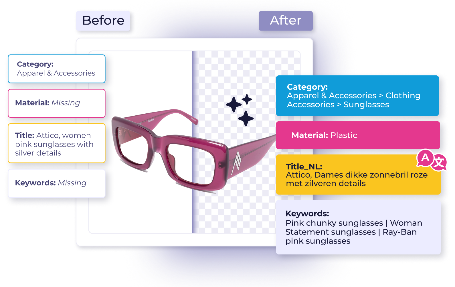 Optimiza tus fichas de producto, gana visibilidad y expándete con atributos, palabras clave y traducciones generados por IA